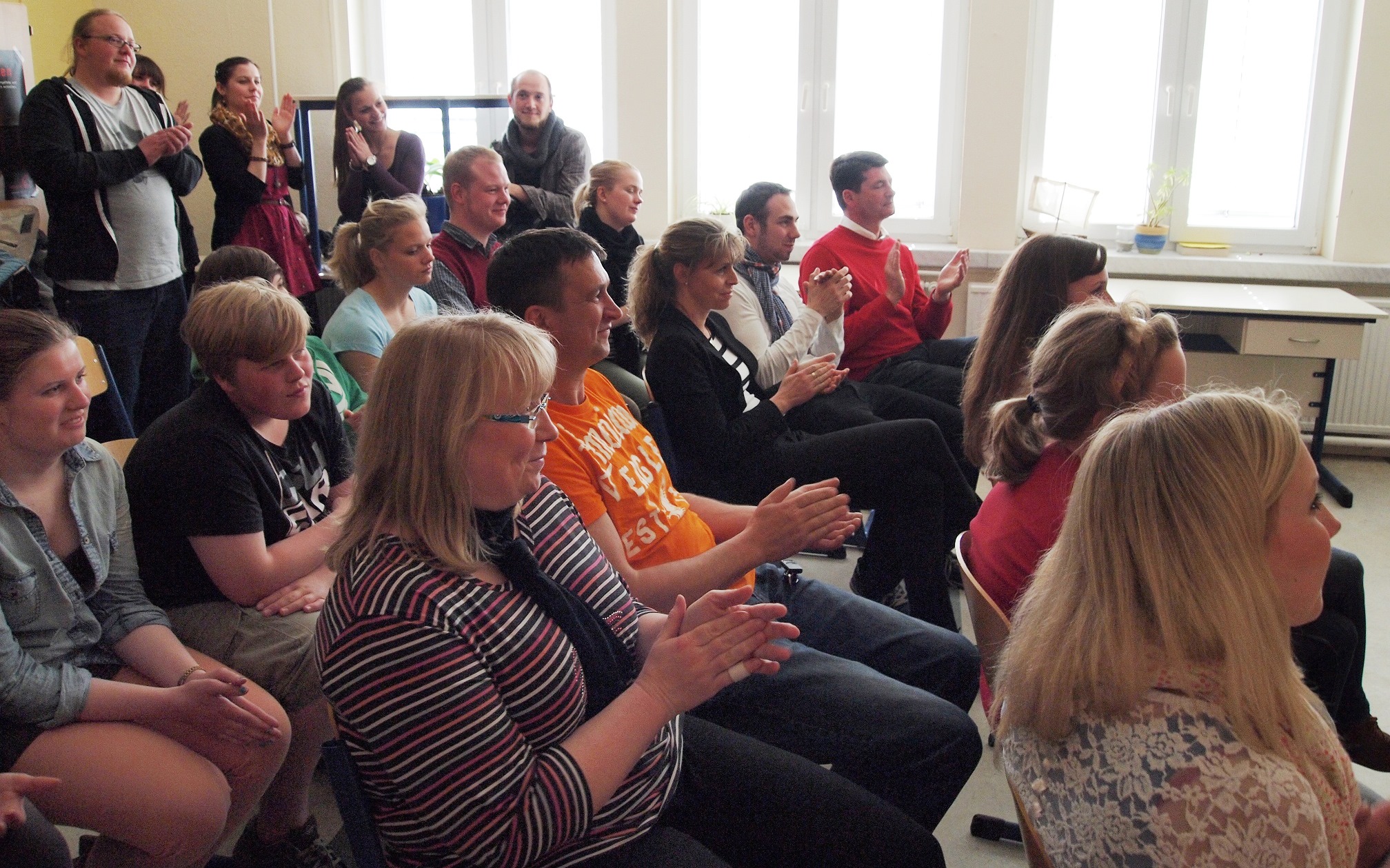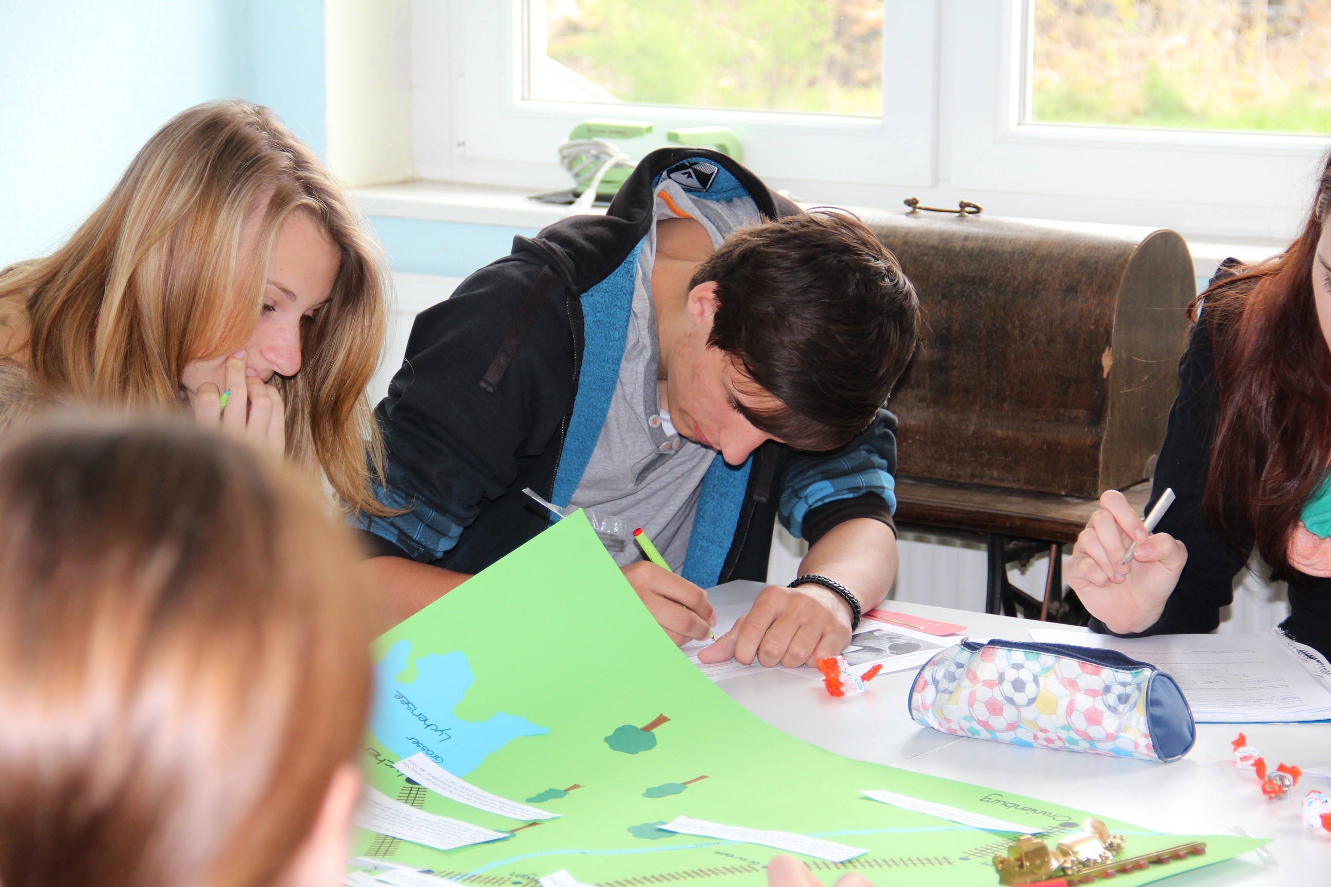 Mit dem Roman hatten die Schüler zuvor schon im Deutschunterricht Bekanntschaft gemacht. Und auch die Studenten kamen nicht unvorbereitet. Sie hatten die Texte – Osterwasser, Ach! Sie sind ein Deutscher?, Ingrid Babendererde, Marthas Ferien und Jonas zum Beispiel – gründlich studiert und sich verschiedene Methoden für den schulischen Umgang mit ihnen zurechtgelegt. In sechs Arbeitsgruppen stellten sie den Schülern Themen und Figuren vor, und machten erste Angebote, womit man sich in den nächsten Tagen beschäftigen könnte. Den Schülern fiel die Wahl nicht leicht. Dennoch entschieden sie sich schnell, mit welchem Text sie weiter arbeiten wollten. Die Zeit war knapp: Innerhalb von anderthalb Tagen sollten Präsentation entstehen, die einem Publikum die verschiedenen Texte näher bringen.