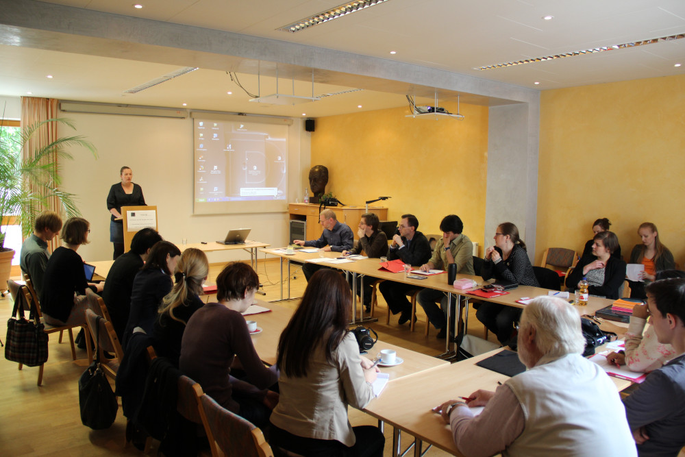 Nach dem ersten Internationalen Doktorandenworkshop im Jahr 2011 hat sich ein kleines Netzwerk entwickelt: Man wusste beim Schreiben, wohin mit seinen Fragen – zumindest mit einigen. Nun war Gelegenheit, sich wiederzusehen und das Gespräch gemeinsam fortzusetzen: Vom 21. bis 23. Mai richtete die Uwe Johnson-Gesellschaft gemeinsam mit dem Institut für Germanistik ihren 2. Internationalen Doktorandenworkshop aus. Ein Drittel der knapp 30 Teilnehmer war bereits beim letzten Mal dabei. Auch dieses Treffen hatte nicht nur Doktoranden aus ganz Deutschland angezogen, es waren Gäste und Referenten aus Japan, Luxemburg und Italien angereist.